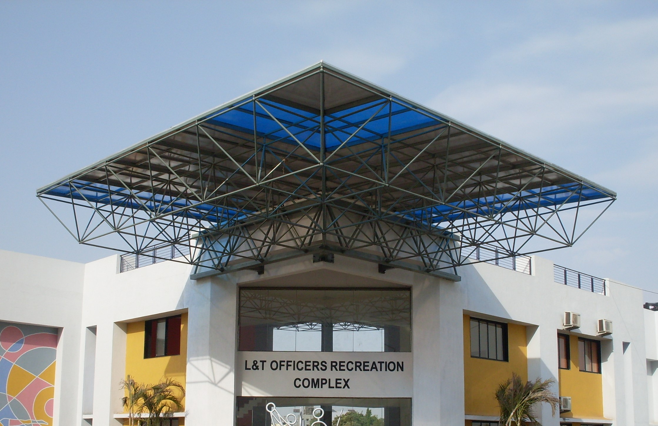 Space Frame is a truss- like, structure is a truss- like, light weight rigid structure constructed from interlocking struts in geometric pattern. Space frames, usually utilize a multi directional span, and are often used to accomplish long spans with few supports. They derive their strength from triangular frames; flexing loads (bending movements) are transmitted as tension and compression loads along the length of each strut.
